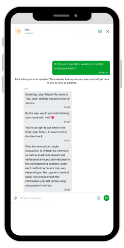 Uglavnom sam tražio pomoć putem onlajn ćaskanja. Kazino radi 24 sata dnevno, a agenti brzo reaguju. U pripremi ovog pregleda 22casino, imao sam nekoliko pitanja na koja su odgovori bili nepotpuni i nisu u potpunosti rešili problem — na primer, situacija sa ograničenjima depozita koju sam opisao u odeljku "tehnički uslovi". Međutim, generalno sam zadovoljan radom ćaskanja na mreži.